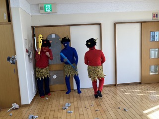 3人の赤鬼・青鬼たちはごめんなさいと言って退散!
